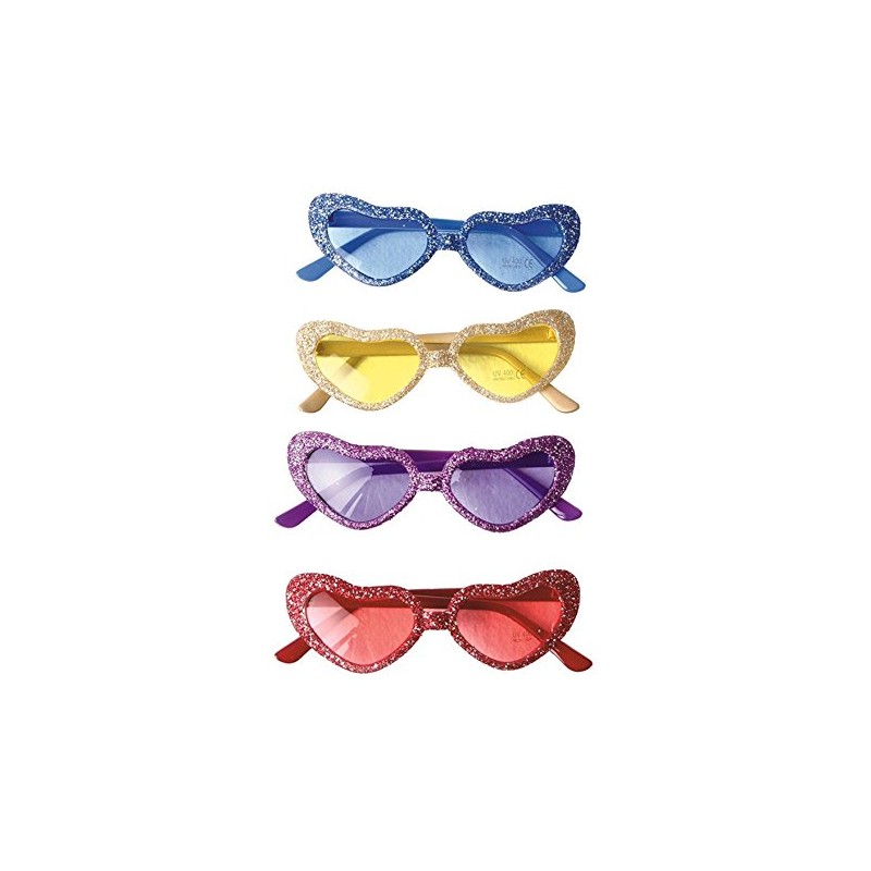 Gafas con corazones en colores surtidos. Precio por unidad. Si quieres algún color en especial, déjalo escrito en observaciones y si lo tenemos te lo haremos llegar, si no, te enviaríamos uno de los que dispongamos. Ideal para la celebración del día de los enamorados o San Valentín. Perfecto para nuestros disfraces de Hippie o Disco.