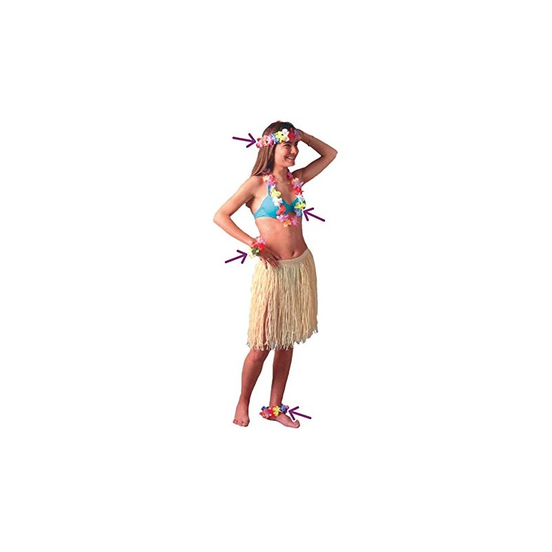 Kit Hawaiano: Pulsera, Tobillera, Collar y Corona de flores. Ideal para fiestas Hawaianas.