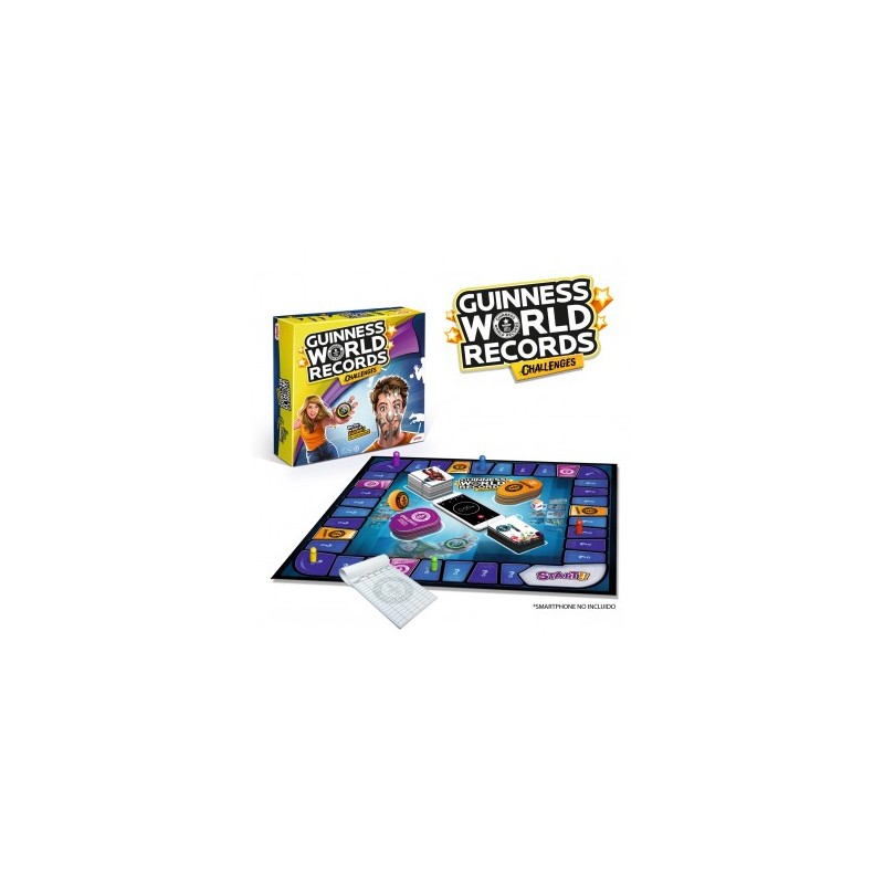 Guinness World Records, un juego de mesa que incluye, 1 tablero, 150 tarjetas con preguntas, 20 tarjetas con retos, 5 peones, 1 dado, 1 set de clips, 1 pelota de ping-pong e instrucciones. El juego oficial de retos y preguntas del Guin¬ness World Récords. Demuestra cuánto sa¬bes acerca de los récords mundiales y tus habilidades retando a los demás jugadores. ¿Podrás ganar un reto? Edad recomendada +8 años.