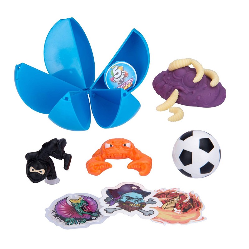 ¡La nueva bola 5 Surprise de Cife incluye 5 sorpresas en 1! Desenvuelve, pela los gajos y descubre qué se esconde en cada uno. ¡Más de 300 sorpresas distintas para coleccionar! Cada porción esconde un tipo de juguete ¡las combinaciones son múltiples! Podrás encontrar figuras de goma, pegatinas, slime, pelotas, bromas, bolis, princesas, insectos, criaturas, plastilina, purpurina, llaveros... ¡y mucho más!