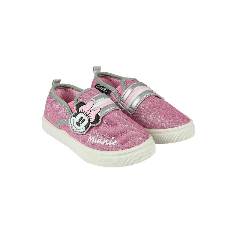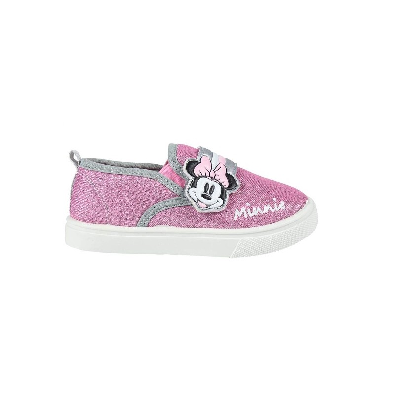 Zapatillas de tela para niñas con diseño de minnie mouse de color rosa decoradas con una franja multicolor y la cara de minnie en el empeine; estas zapatillas para niñas están fabricadas con tela y suela de goma antideslizante para asegurar su resistencia y antideslizamiento, tanto en parques como en cualquier aventura en la que se quiera embarcar tu hija; al ser elásticas se las podrá poner ella solita sin que tengas que ayudarle; con estas zapatillas de minnie mouse revivirá todas las aventuras del famoso ratón.