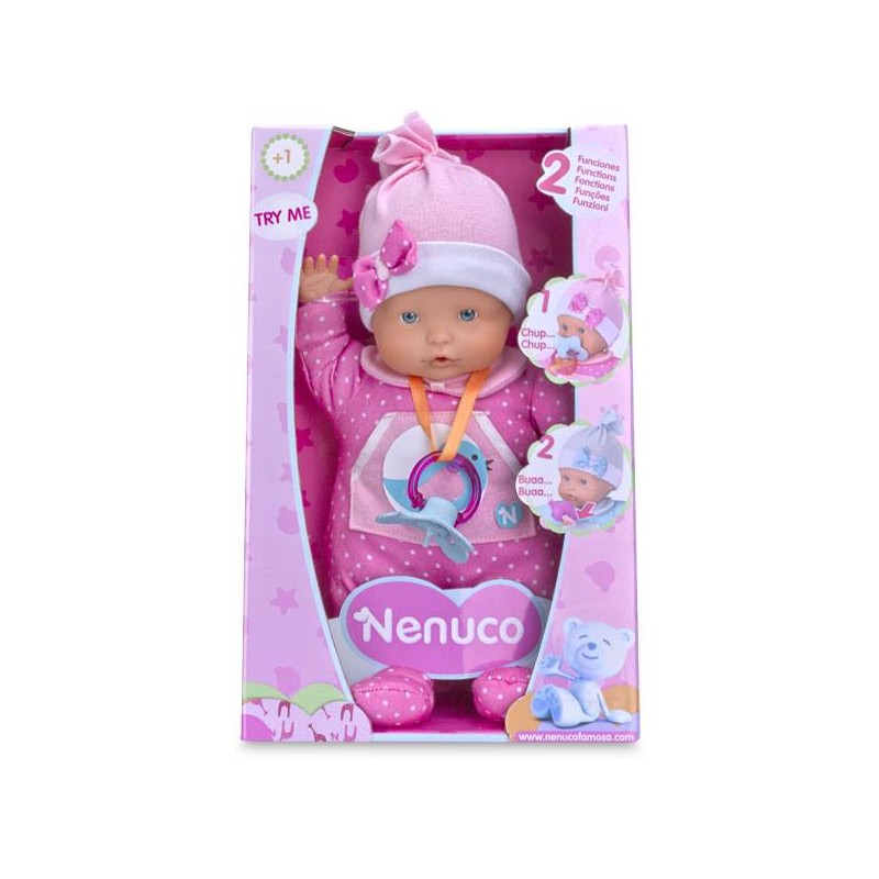 Nenuco blandito de color rosa y con 2 funciones: xupete y llanto. Ideal para ser tu primer Nenuco! Edad recomendada: +12 meses.
