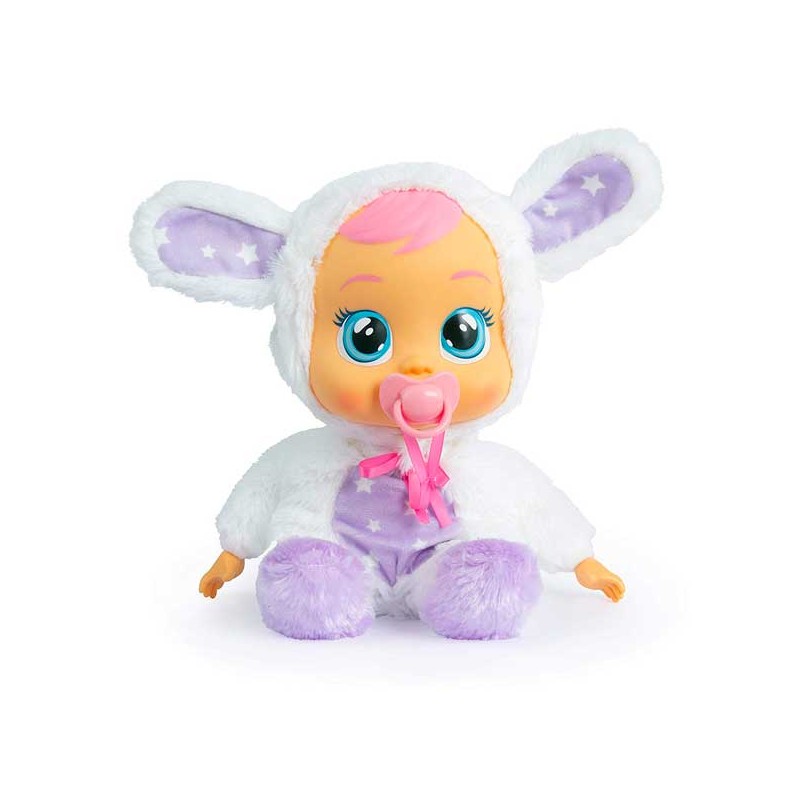 Cuando le quitas el chupete, llora lágrimas iluminadas y emite sonidos reales. Si vuelves a ponerle el chupete, su cara se iluminará.