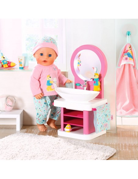 CUIDA DE BABY BORN: cepillarse los dientes con BABY Born será divertido; el espejo se ilumina y emite sonidos; llena el lavabo con agua real y luego quita la tapa para ver cómo el agua desaparece nuevamente