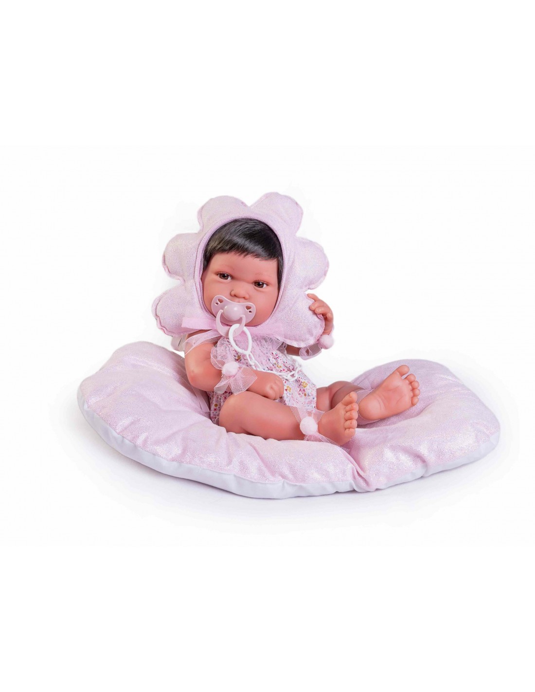 Pipa es una recién nacida muy divertida, que hoy ha querido disfrazarse de flor. Su tela es brillante, asi que ¡Pipa resplandece! Lleva un pelele de florecitas y le gusta tumbarse en su cojín a jugar. Lleva unos complementos con pompón en sus manos y pies. Su cuerpo es de suave vinilo sexuado. Mide 42 cm y le encantará que la abraces para dormir. ¿Hay algo más adorable que un bebé? Los Recién Nacidos son la esencia de Muñecas Antonio Juan. Un universo de dulzura creados para acompañar a los más pequeños a descubrir el mundo. Compañeros inseparables de largos días de juegos a los que no les falta detalle en sus tiernas facciones y calidad de su ropita y complementos.