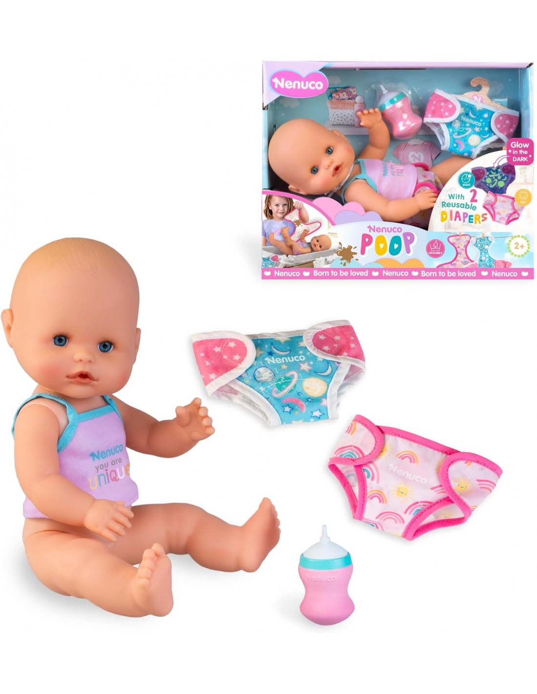 Alimenta a Nenuco con su biberón especial y prepárate para cambiar sus pañales después de que haga popó, añadiendo un nivel de realismo que hará las delicias de los pequeños