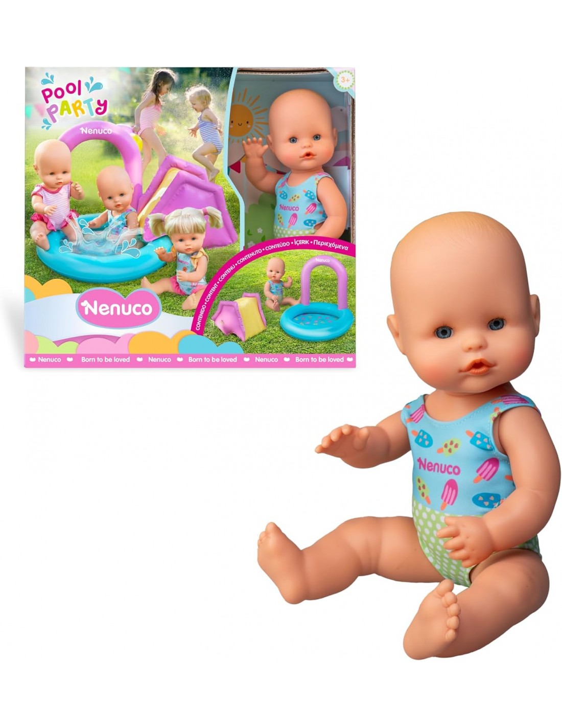 Nenuco de 35 cm con cuerpo duro. Este adorable muñeco viene preparado para la acción acuática, ideal para jugar en verano o en cualquier momento