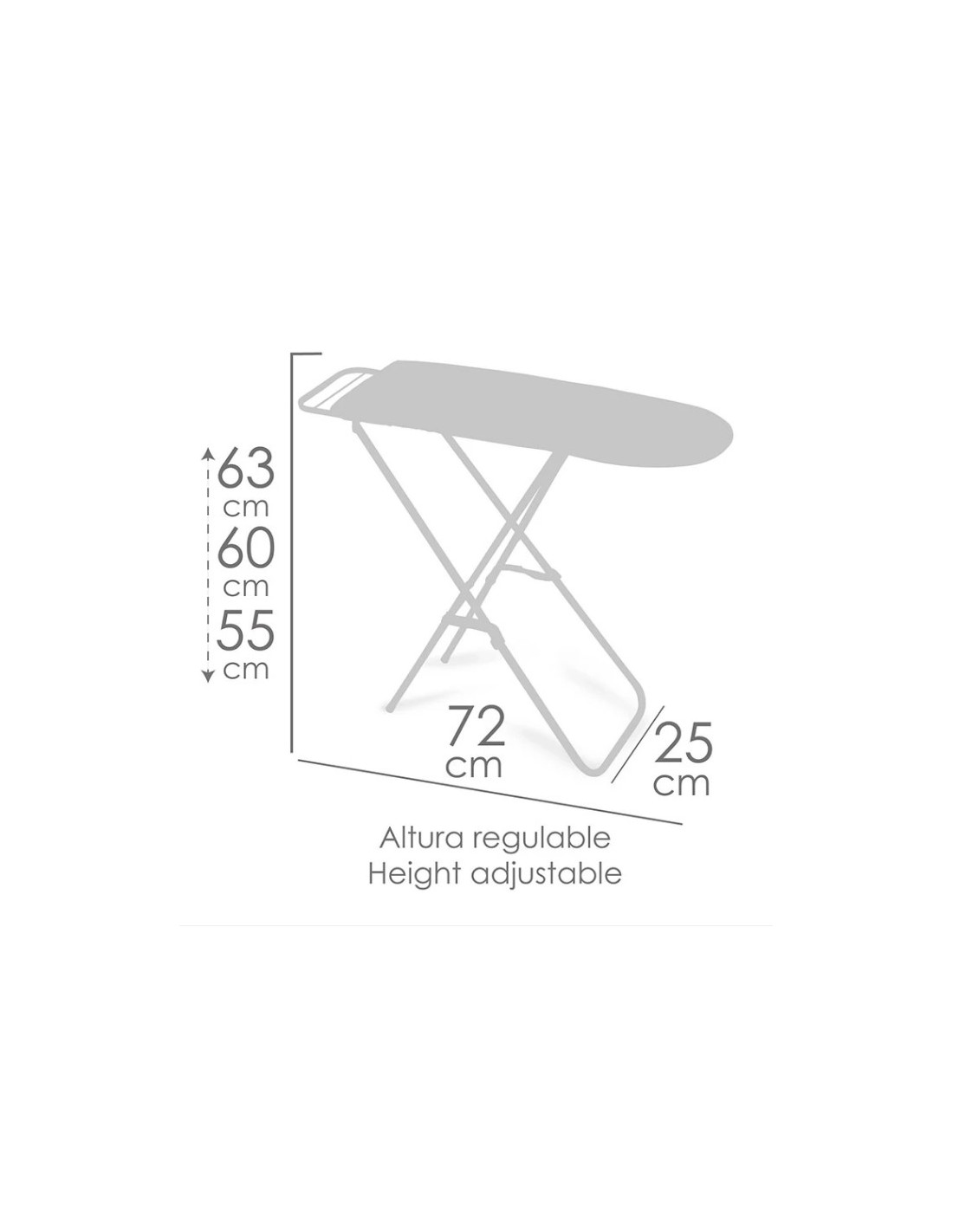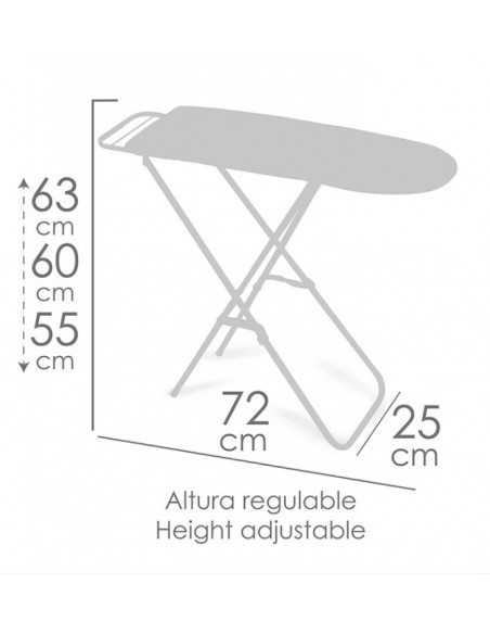 Medidas aproximadas: 63 cm de alto (regulable a 60 o 55 cm), por 25 cm de ancho y 72 cm de fondo.