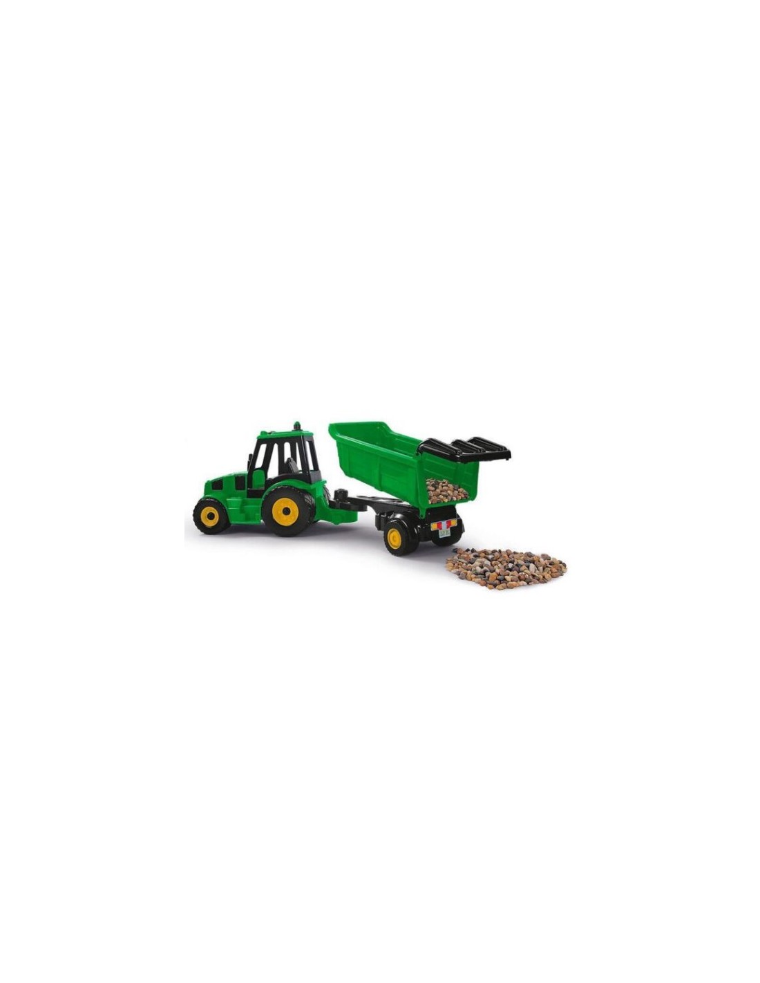 Este tractor de carga traerá a sus hijos mucha diversión! Ayude al campesino a cuidar su granja con este tractor verde. Sus hijos pueden recoger materiales como arena, césped o piedras y echarlos al remolque. Con el mecanismo de inclinación del remolque, es fácil descargar los elementos que ha recogido. Una vez listo, pueden deslizar el remolque, sujetarlo al tractor y manejar de vuelta a la granja. Este camión de juguete está hecho con plástico resistente y es fácil de usar.