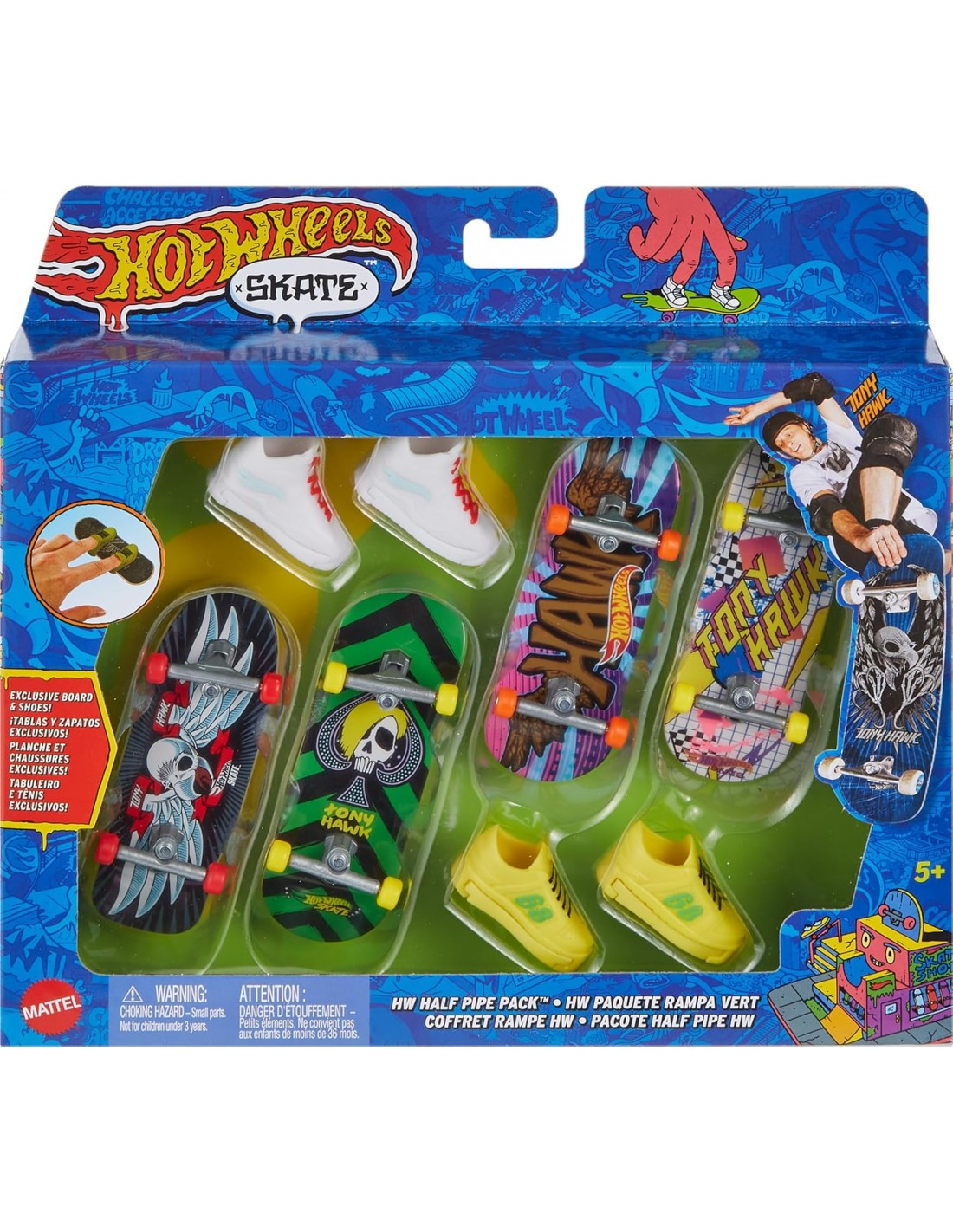 El paquete múltiple Hot Wheels Skate cuenta con 4 diapasones totalmente montados creados en colaboración con el icónico patinador Tony Hawk más 2 pares de zapatos de skate geniales.