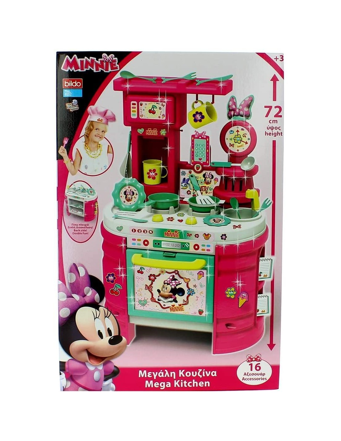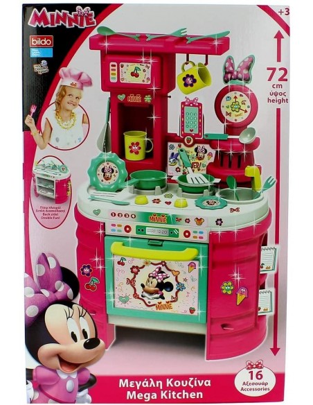 Con esta súper cocina de Minnie Mouse todos los platos te saldrán de ¡rechupete! Esta cocinita de colores muy llamativos con simpáticas pegatinas de Minnie y sus amigos será ideal para jugar los más peques de casa. Con 15 accesorios que no podrán faltar en tu cocina. Mide 72 centímetros de alto. Este juguete es recomendado para mayores de 3 años.