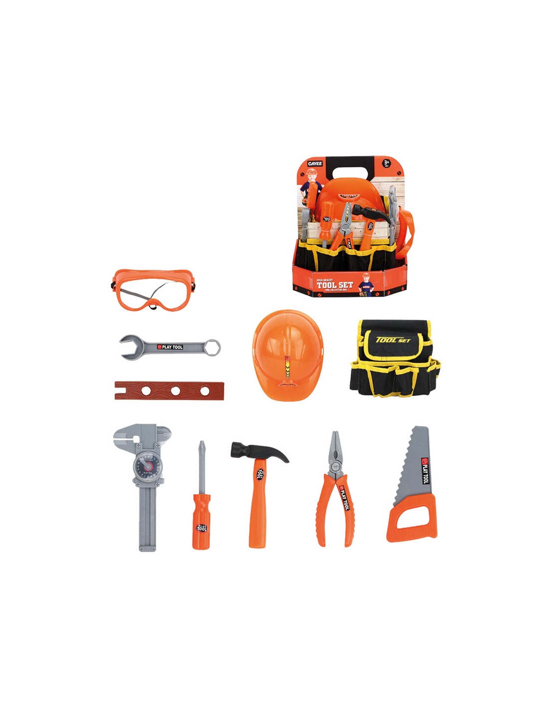 🔢 Incluye varias herramientas de juguete (martillo, destornillador, llave inglesa) y un casco.