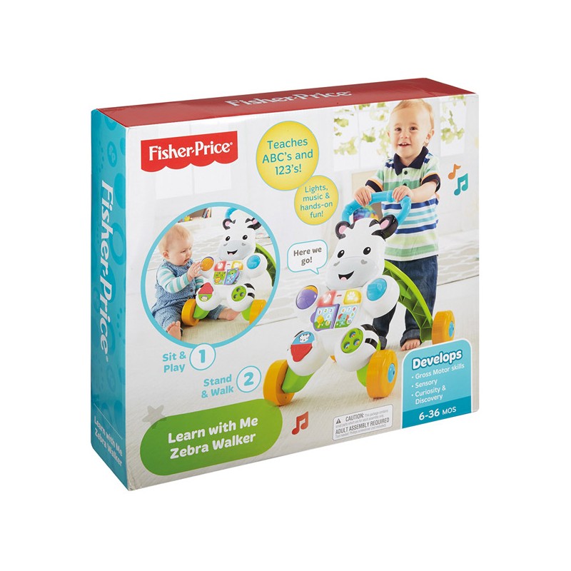 Andador Cebra Parlanchina primeros pasos. Con esta simpática cebra parlanchina tu pequeñín aprenderá sus primeras palabras y dará sus primeros pasos! Esta cebra viene cargada de entretenidas actividades para que el niño juegue sentado. Incluye un libro con una página que se puede pasar y botones luminosos que activan canciones y frases sobre las letras y los números. Edad recomendada: +6 meses.