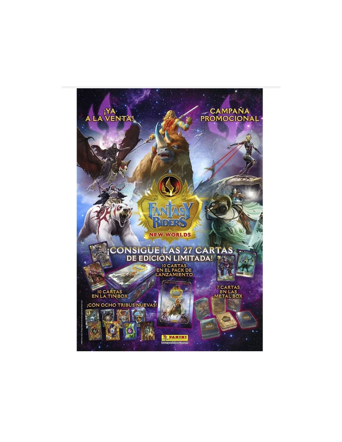 Con sus 396 cartas, Fantasy Riders: New Worlds no solo incluye 5 tribus completamente nuevas con todo tipo de personajes, monturas, riders, objetos, hechizos y lugares, sino que además presenta un montón de cartas que expanden las tribus presentadas en colecciones anteriores. Además, hay 27 cartas limitadas con alucinantes efectos que solo podrás encontrar en las latas metalizadas y los packs de la colección. ¡No te las pierdas!