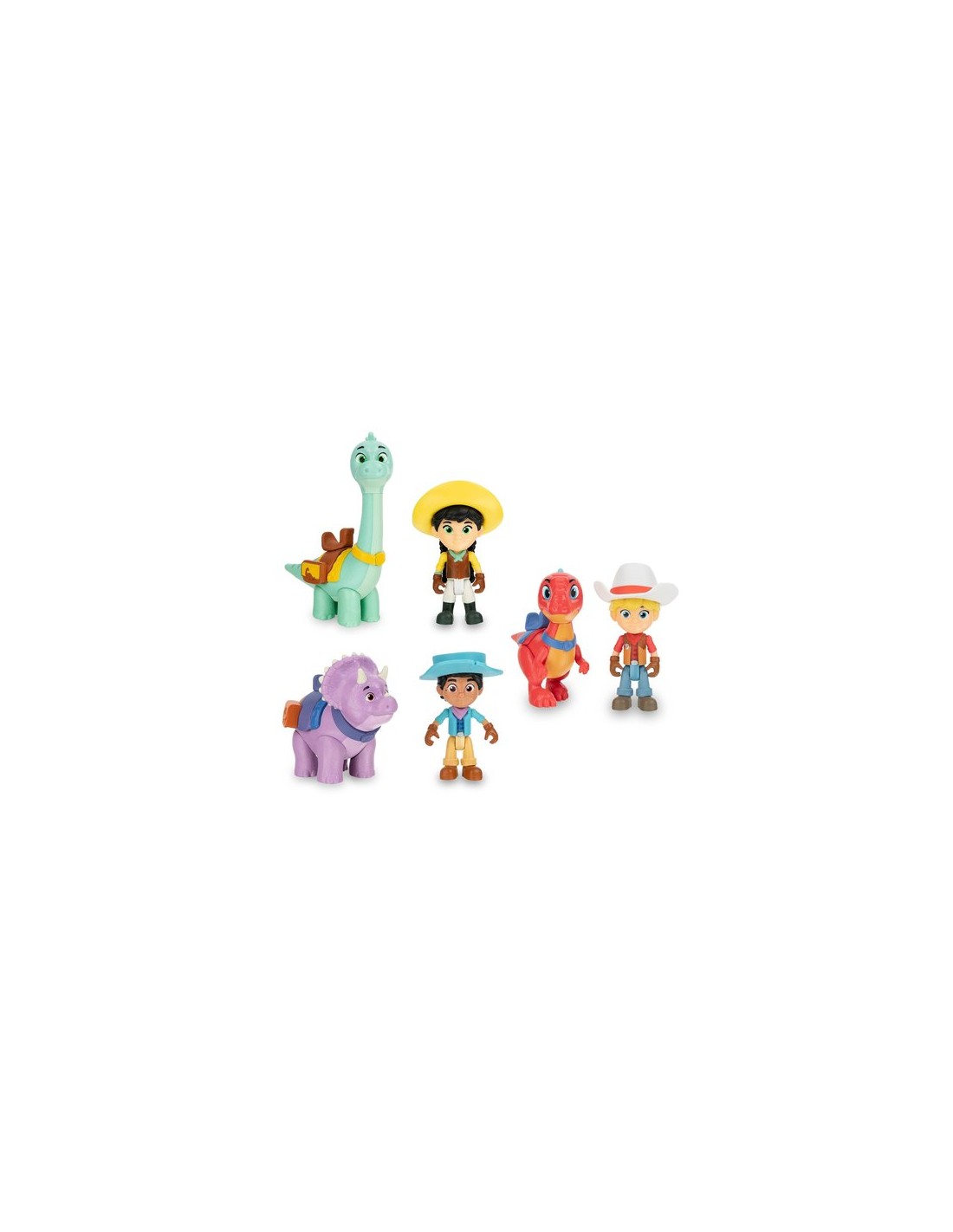 íLlega la colección de juguetes de Dino Ranch! Este pack de 2 figuras incluye un dinosaurio y a uno de los hermanos de la serie. Hay tres packs diferentes para que los niños puedan coleccionarlos todos. Podrán elegir entre: Jon y Blitz; Min y Clover y Miguel y Tango. Las figuras de los hermanos miden 7cm aprox y los dinosaurios miden entre 7 y 9cm. Ambos son articulados, por lo que los niños podrán sentar a los personajes en su dinosaurio. Cada pack se vende por separado.