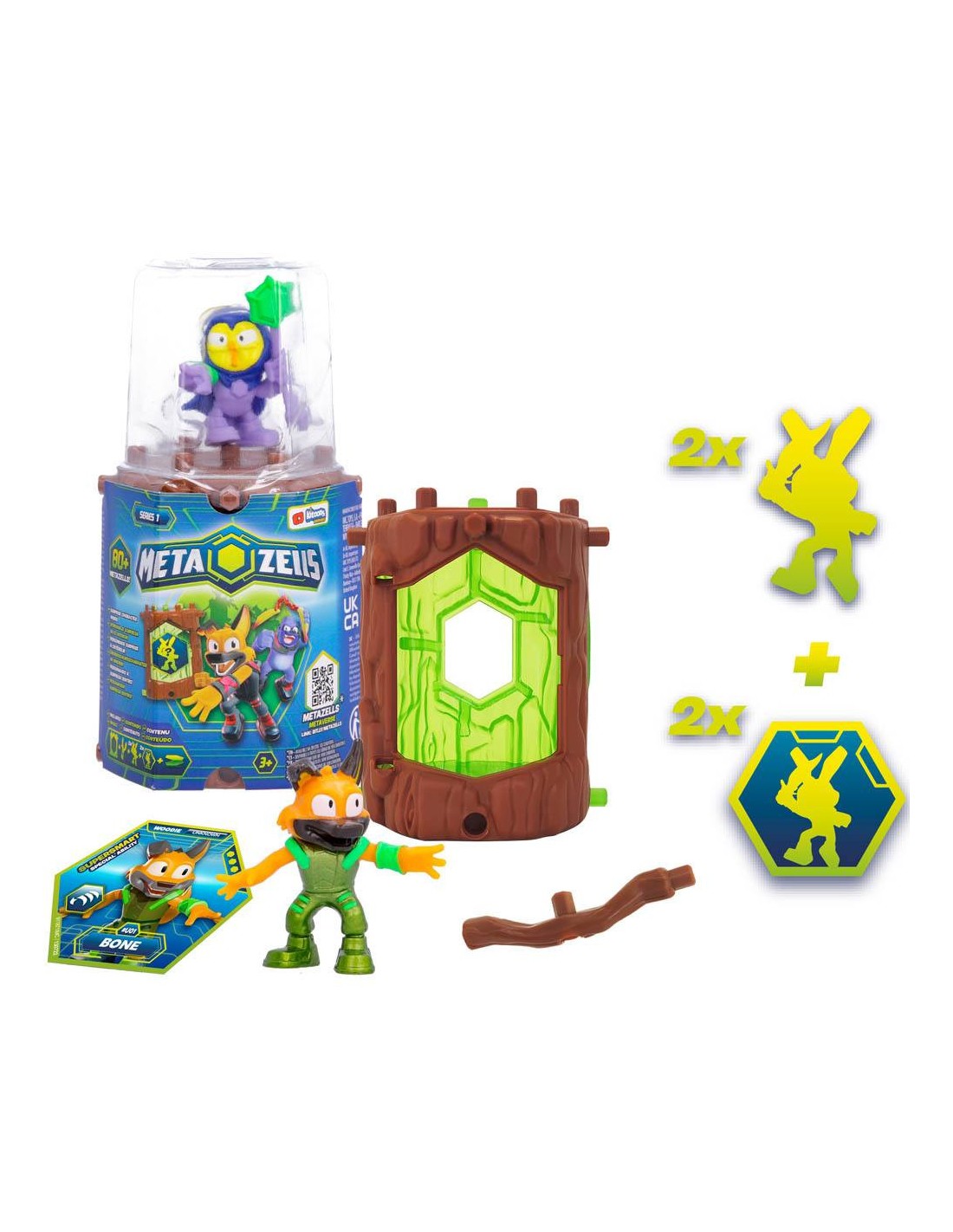 Metazells Main Pack 2 figuras 4 cm con 1 tronco 2 cartas y 1 accesorio (Exp 12 piezas)
