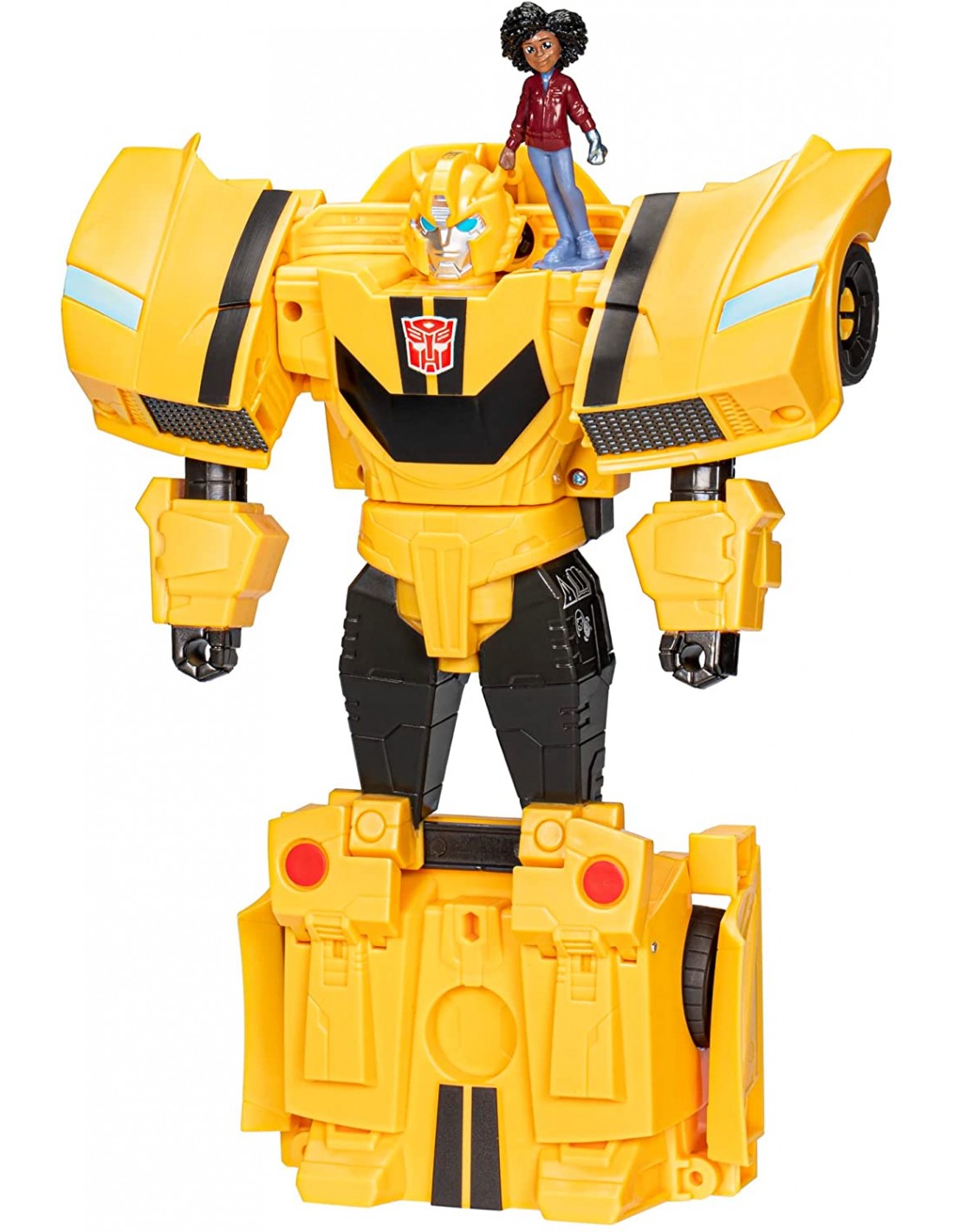 FIGURA 2 EN 1 CON CONVERSIÓN DE GIRO: Comienza la conversión a Bumblebee modo robot en 4 pasos manuales. ¡Después, conecta la figura humana de Mo Malto al hombro del robot para activar el resto de la conversión con un emocionante giro! Conviértelo nuevamente a modo coche deportivo en 11 pasos de forma manual.