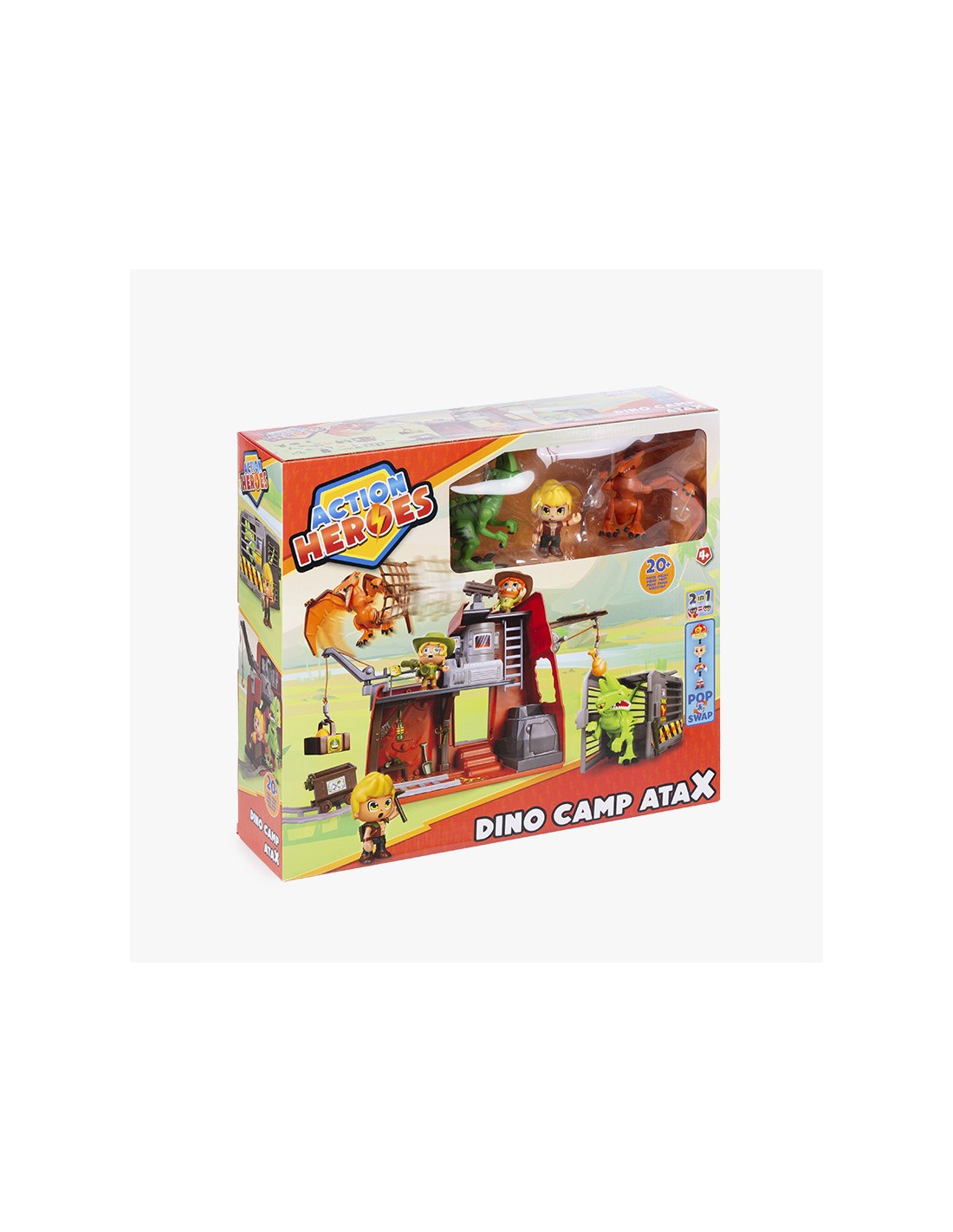 Set de juego Action Heroes Dino Camp atax. Con este set de juego podrás disfrutar jugando con tus personajes favoritos. Los dinosaurios intentan atacar el centro para recuperar sus huevos robados, crea tus propias historias y diviértete con Action Heroes. El set incluye dos dinosaurios y un personaje, un total de 20 piezas.