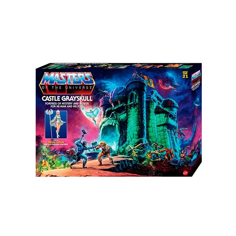 Castillo de Grayskull: La poderosa fortaleza de Eternia® llena de misterio y magia para He-Man® y sus enemigos. El Castillo de Grayskull es un conjunto de juego de tipo diorama que ofrece muchísimas horas de acción creativa y aventuras divertidas para los fans de Masters del Universo. El enorme conjunto de juego se abre para revelar su interior con cuatro habitaciones geniales para jugar y exponer. Con muchos accesorios temáticos de Masters del Universo para aumentar las opciones de personalización. Incluye un ascensor que funciona de verdad y una trampilla que seguro que encantará a los fans de la colección original. El conjunto incluye también una edición especial de la figura de la Hechicera. El castillo permite colocar todas las figuras de Orígenes de 14cm (se venden por separado). Los fans de Masters del Universo se lo pasarán en grande recreando escenas de la serie e inventando sus propias historias de aventuras en el famoso castillo donde se produce la batalla entre el bien y el mal. ¡Por el poder de Grayskull™! Los colores y la decoración pueden ser distintos de los mostrados.