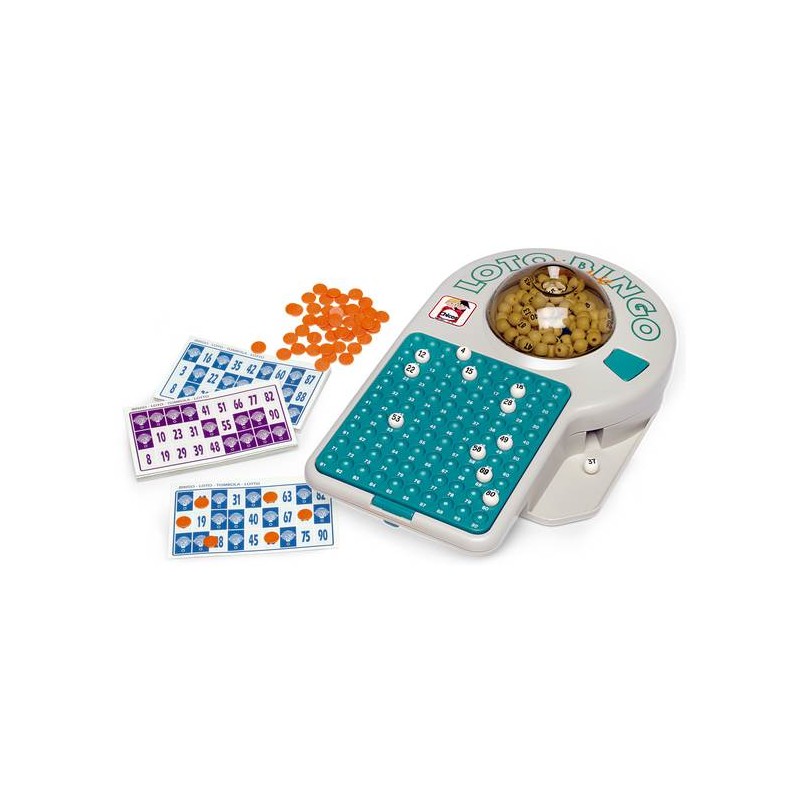 Divertida lotería eléctrica con la que podrás jugar al bingo. Dispone de extracción automática de bolas y un compartimento en el que podrás guardar los cartones una vez terminado el juego. Incluye 24 cartones para jugar y 90 bolas con números grabados. Funciona con 2 pilas C NO incluidas. Recomendado a partir de 3 años.