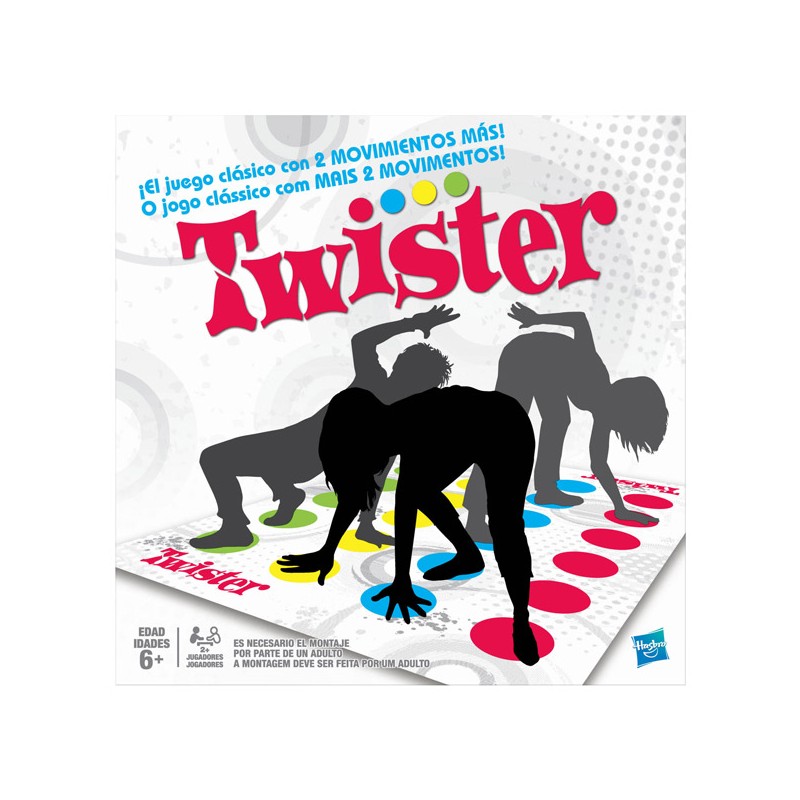 Pon a prueba tu equilibrio con el nuevo Twister. Ahora con dos nuevas formas de juego. Un juego ideal para jugar en casa y al aire libre. Sigue las instrucciones de la ruleta pero sin caerte. Edad recomendada: +6 años.