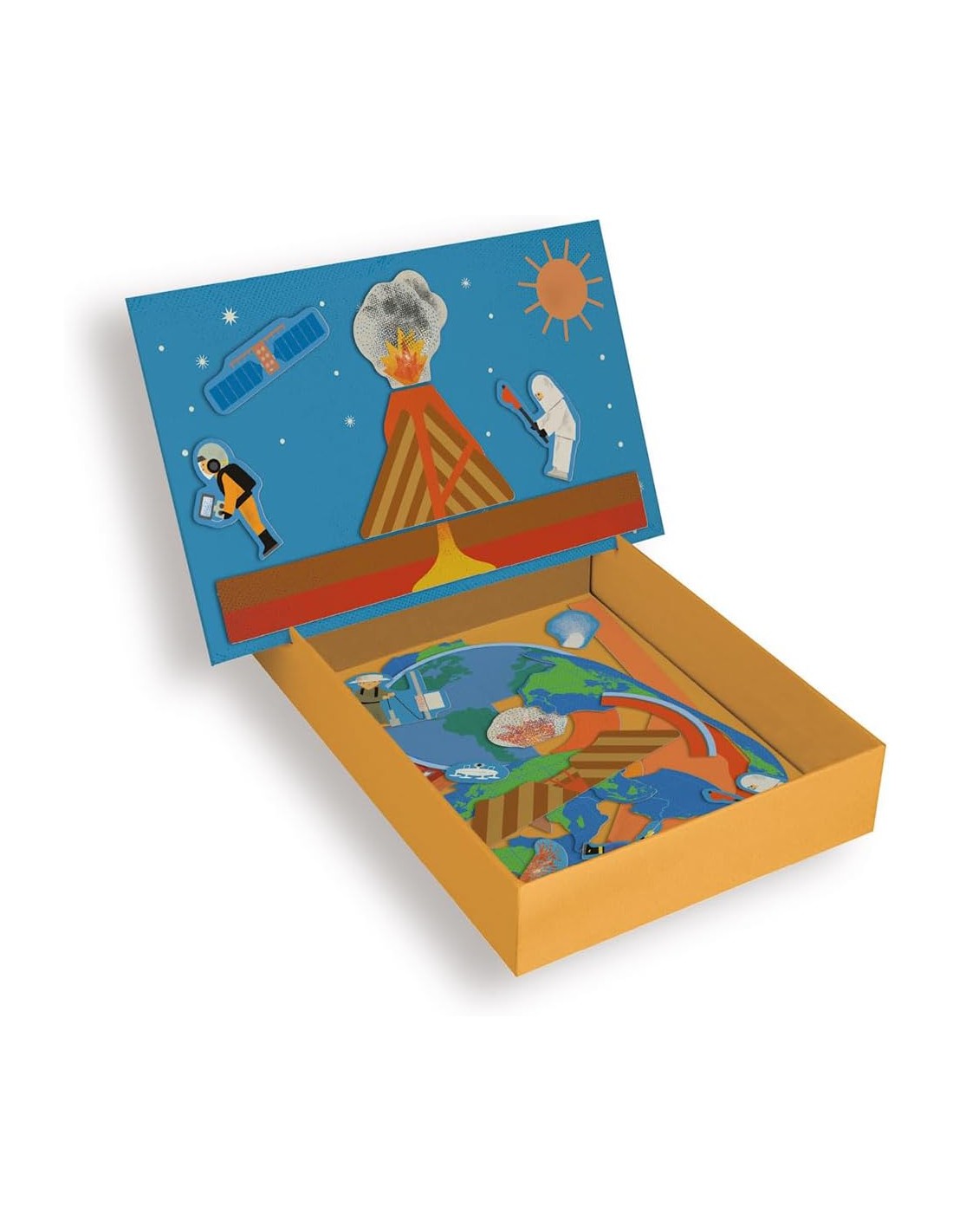 JUEGO MAGNÉTICO infantil óptimo para explorar el fascinante mundo de los volcanes . Este juego educativo introduce de forma visual y manipulativa conceptos clave como las capas de la Tierra, las placas tectónicas, los tipos de volcanes y los instrumentos utilizados para su estudio y control.
