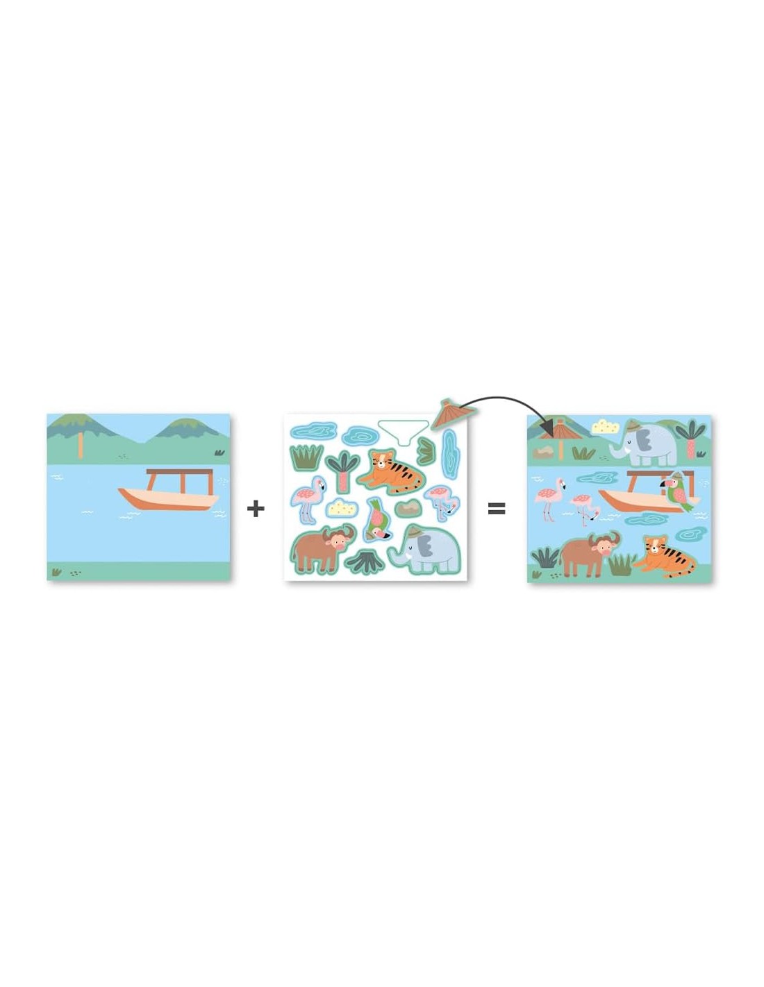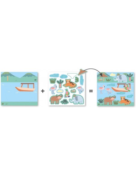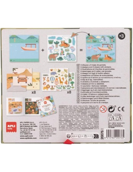 PEGATINAS removibles, permiten al niño corregir si se equivoca. Incluye un cuadernillo con ejemplos de las láminas completadas.
