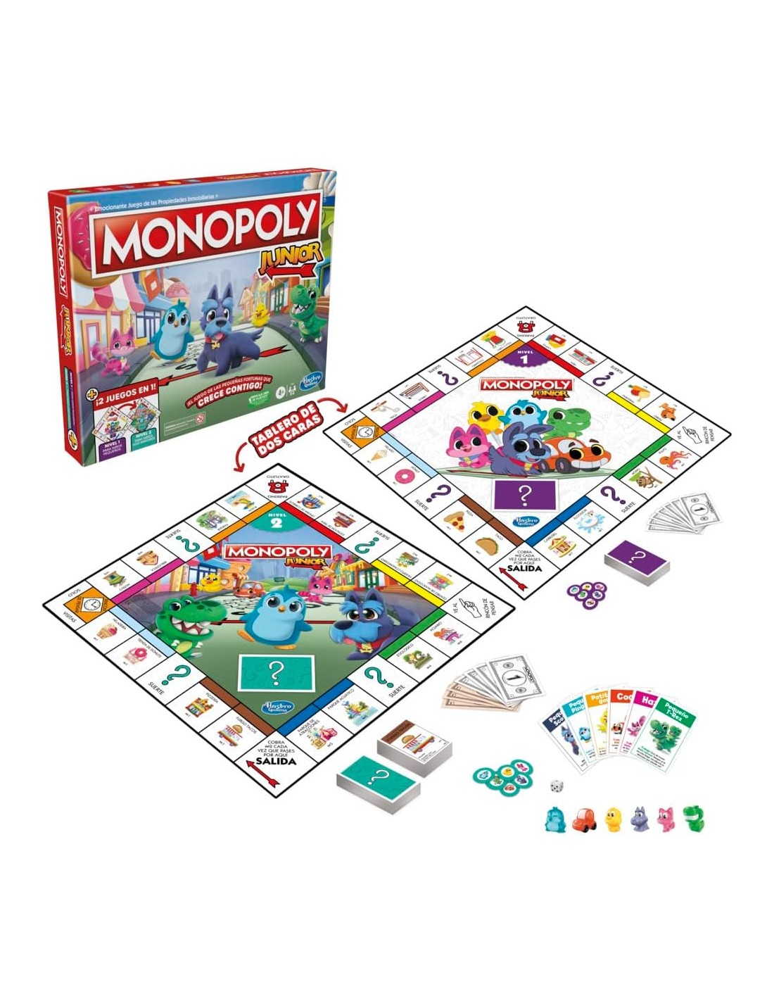 ¡El primer Monopoly que crece con los más pequeños! Esta versión especial de Monopoly Junior es la introducción perfecta al mundo de las propiedades inmobiliarias, diseñada con un tablero de doble cara para ofrecer dos niveles de juego adaptados a diferentes edades.