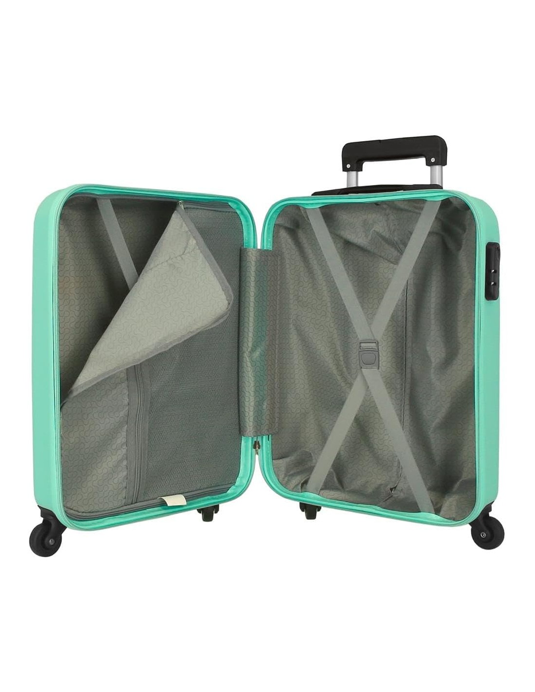 Maleta de cabina de 38 cm x 55 cm x 20 cm; tiene una capacidad de 35l y pesa 2,5 kg; fabricada en abs, un material ligero y resistente