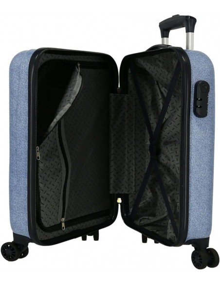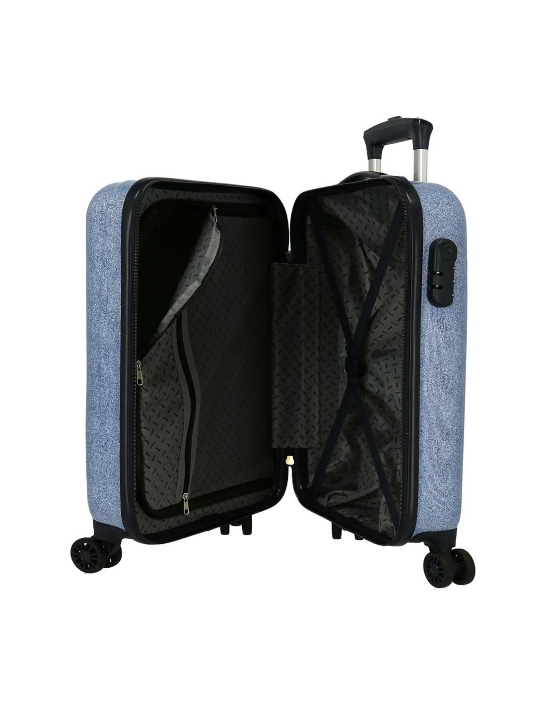 Maleta de cabina de 38 cm x 55 cm x 20 cm (ruedas y asa incluida). Tiene una capacidad de 35L y pesa 2,5 kg. Fabricada en ABS, un material resistente y ligero.