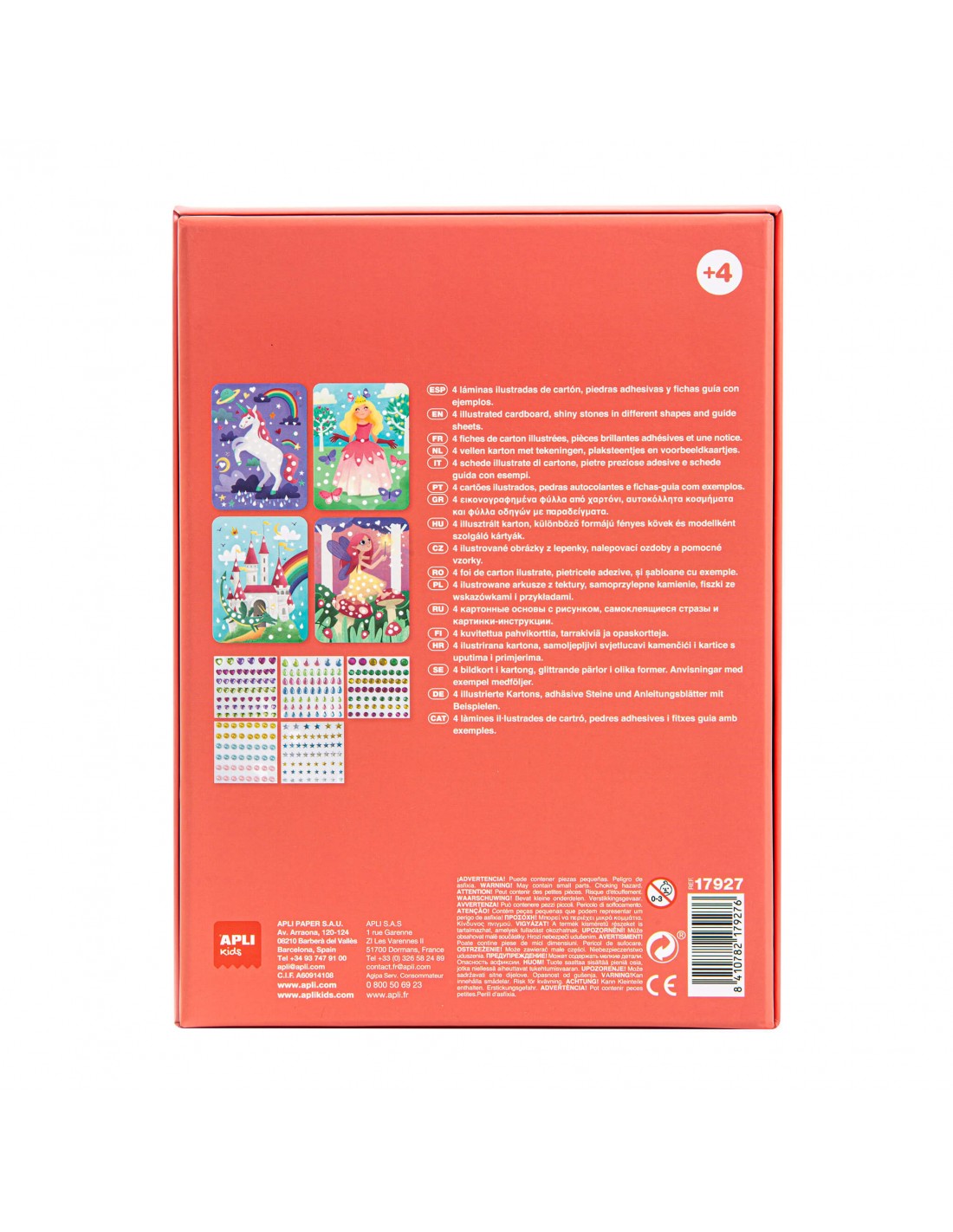 Juego para crear mosaicos con diamantes de colores. El juego consiste en completar los dibujos de las fichas con diamantes brillantes para un acabado espectacular. Juego libre, solo deberán fijarse en la forma y el tamaño del brillante, el color lo eligen los niños. Producto con gran contenido: 4 láminas de cartón ilustradas, 276 diamantes de colores diferentes y 1 hoja de guía. Fácil de usar: las fichas de cartón disponen de espacios blancos con puntos de colores a modo de guía para rellenar con los diamantes. Producto con un alto valor didáctico, perfecto para desarrollar des de pequeños la destreza y la precisión, así como estimular la psicomotricidad fina, trabajar el desarrollo óculo-manual y favorecer la orientación espacial. Recomendado para niños a partir de 4 años.