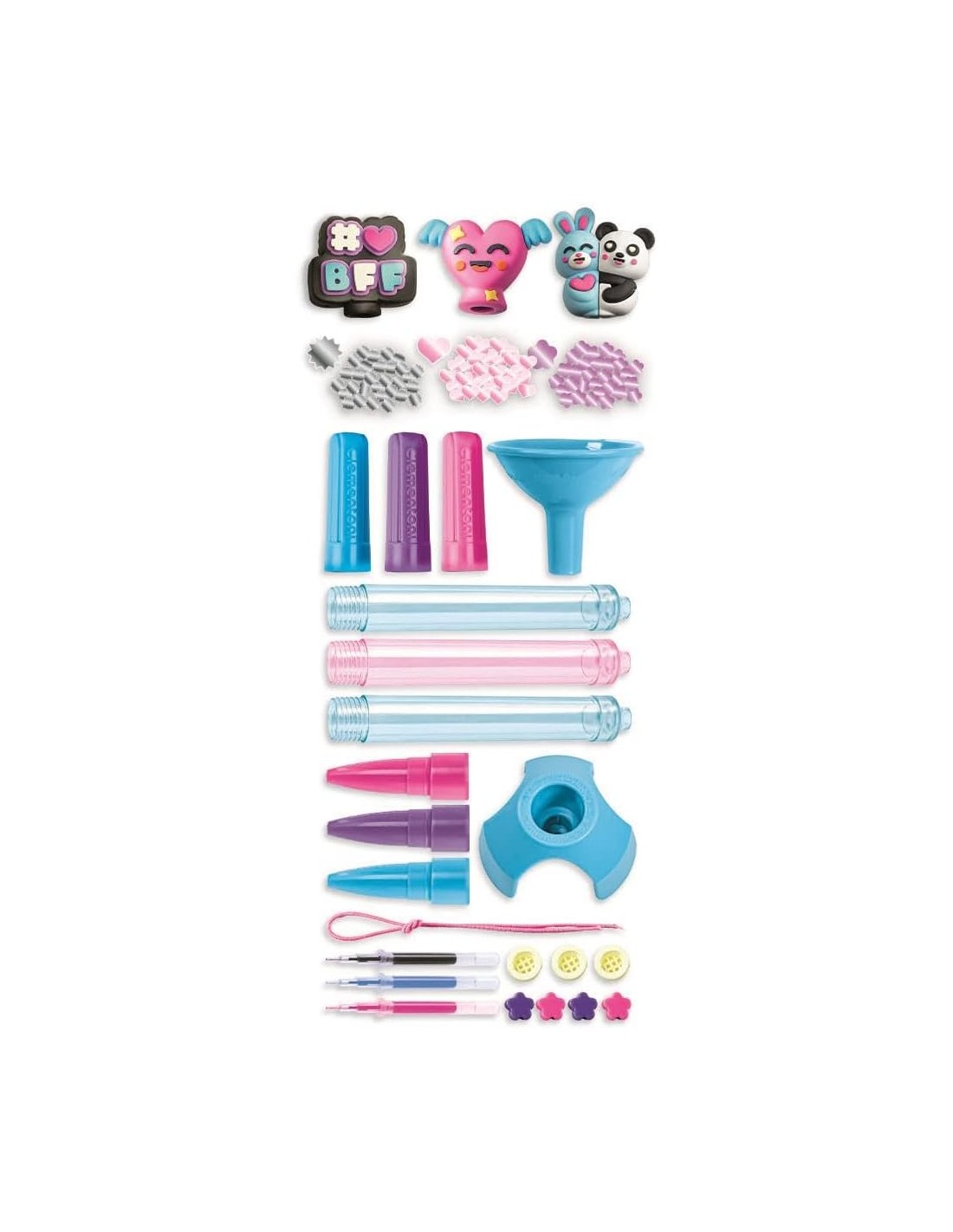 Un práctico y completo kit que contiene: bolígrafos, tintas de diferentes colores, personajes y todas las herramientas para fabricarlos