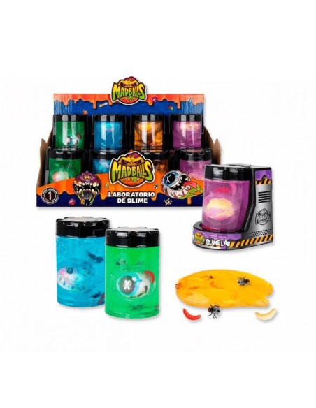 ¡Sumérgete en el laboratorio más asqueroso con las Madballs Laboratorio de Slime! Cada cabeza monstruosa viene escondida dentro de un frasco lleno de slime. Mete la mano y rebusca entre el slime para encontrar accesorios como gusanos y arañas. ¡Hay 4 personajes para coleccionar!