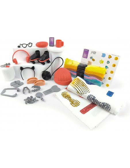 Corta la tela siguiendo los patrones impresos; Fácil! Sin hilo ni aguja, la ropa se sujeta a la muñeca; ¡Más de 150 looks diferentes combinando las distintas prendas; ¡Crea diferentes peinados para tu muñeca, cortando el cabello como quieras; Con los numerosos accesorios incluidos, personaliza aún más tu muñeca: zapatos, bolsos, joyas, gafas.