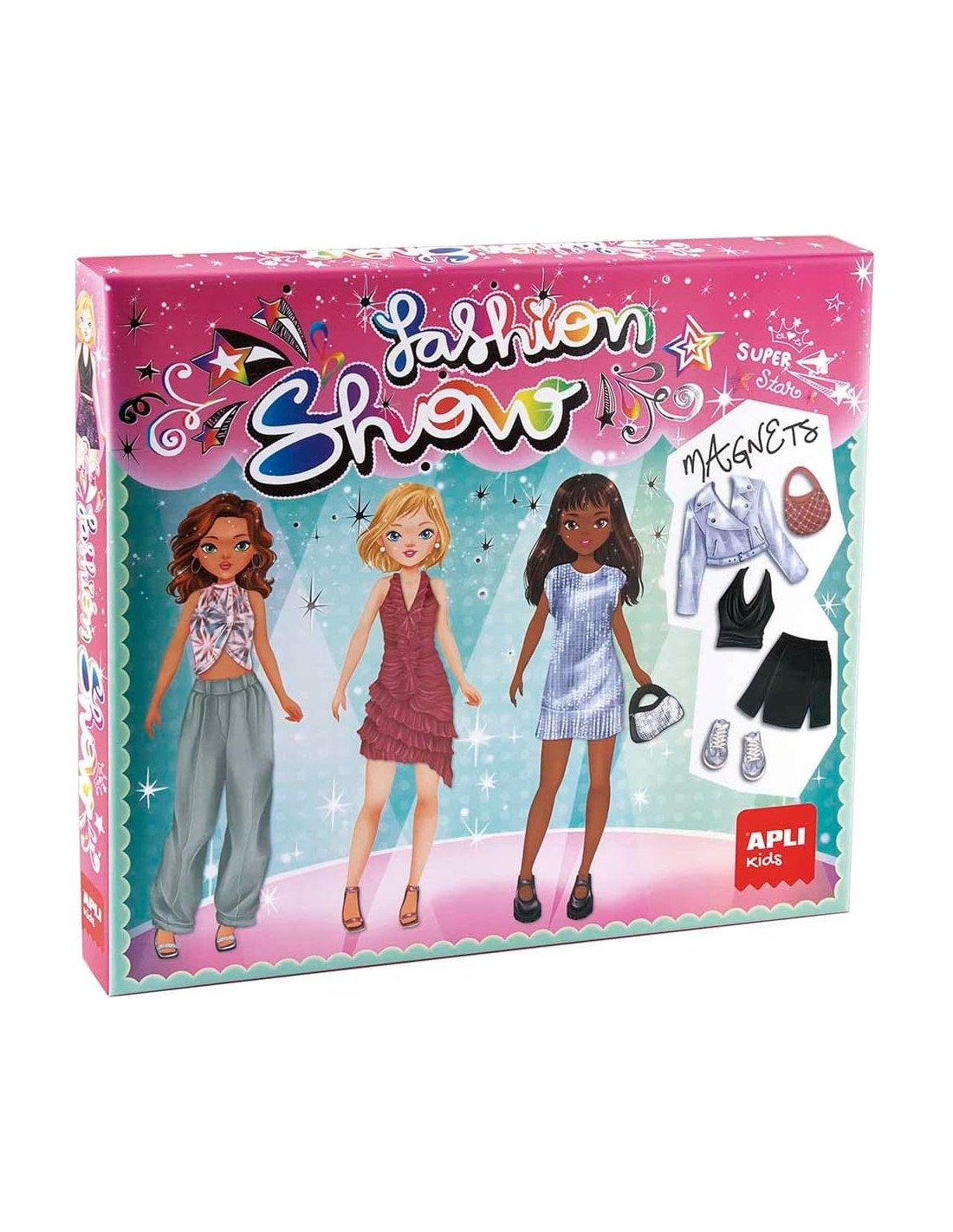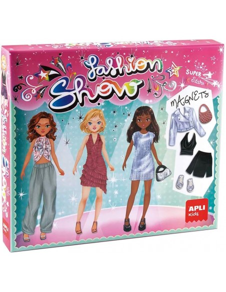 Juego magnético modelo Fashion Show para crear diferentes looks y convertirte en una diseñadora de moda. Viste y desviste a los personajes con la ropa y complementos incluidos.