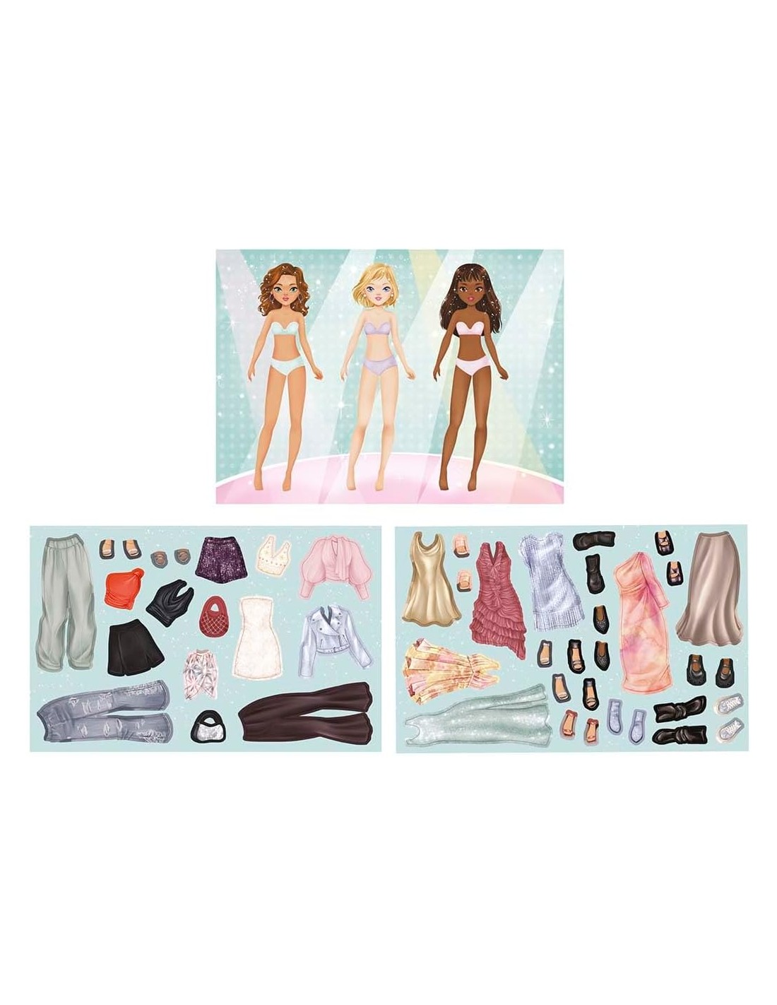 El juego contiene 1 escenario imantado y 43 imanes con forma de diferentes prendas y complementos con los diseños más actuales.