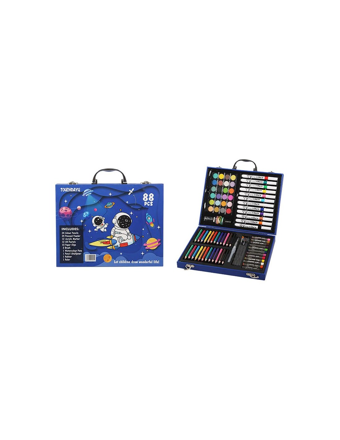 ¡Despega hacia la creatividad con el espectacular Maletín de Escritura Astronauta de 88 Piezas! Perfecto para pequeños artistas y exploradores del espacio, este completo set ofrece todo lo necesario para dibujar, pintar y escribir sin límites.