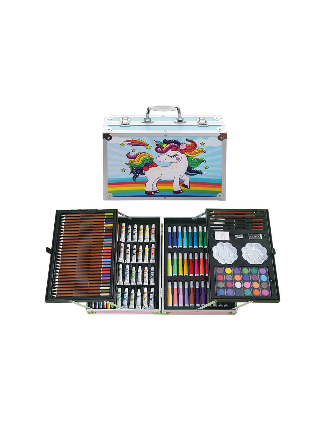 ¡Da rienda suelta a tu creatividad con el completo Maletín Metálico de Escritura de 145 Piezas! Un set artístico ideal para niños y niñas que disfrutan dibujando, coloreando y creando sin límites.