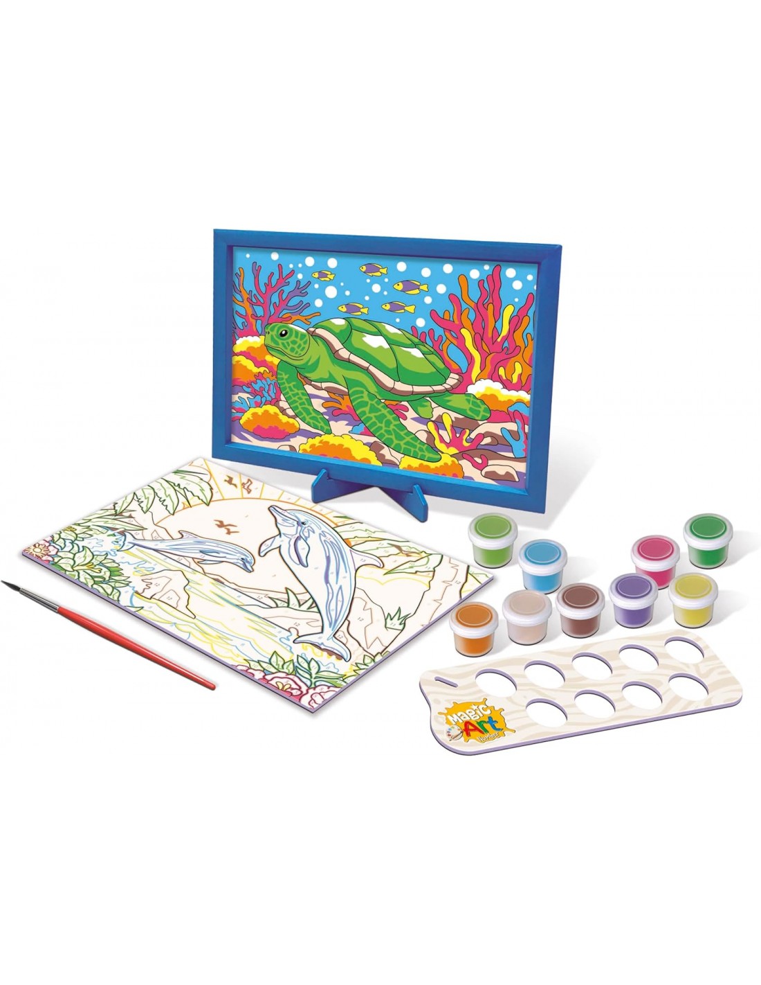 Incluye todo lo necesario para empezar: lámina con dibujo numerado, pinturas y pincel.