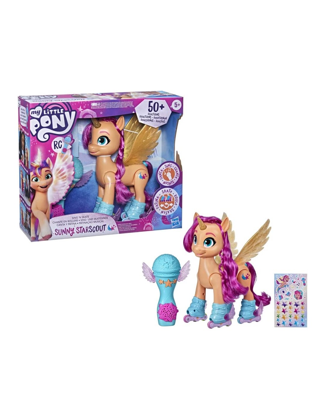 El micrófono incluido, se utiliza como control remoto para hacer que la figura de Sunny Starscout patine hacia delante o gire en círculos