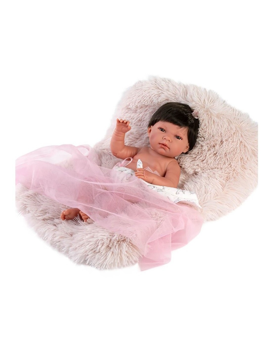 Nica Recien Nacido Cojin Rosa 40 cm Esta bebé recién nacida tiene un bonito pelo negro que puedes peinar. En su cojín peludo la puedes acostar y ponerla en muchas posturas. Usa el dou dou para limpiarle la carita. Detalles del producto Altura: 40 cm. Material: Cuerpo de vinilo. Articulada.