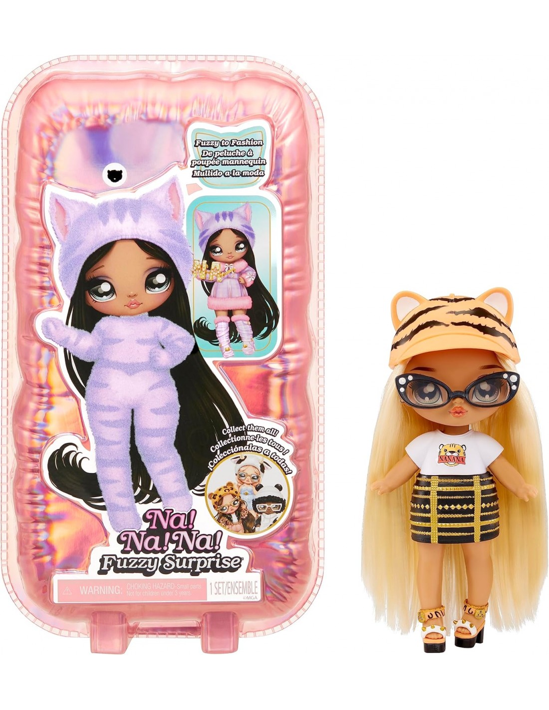 FUZZY SURPRISE MUÑECA: De peluche a fashion, despega el flocado para descubrir una sorpresa Incluye una preciosa muñeca de moda de 18 cm inspirada en un animal, con múltiples conjuntos y sorpresas