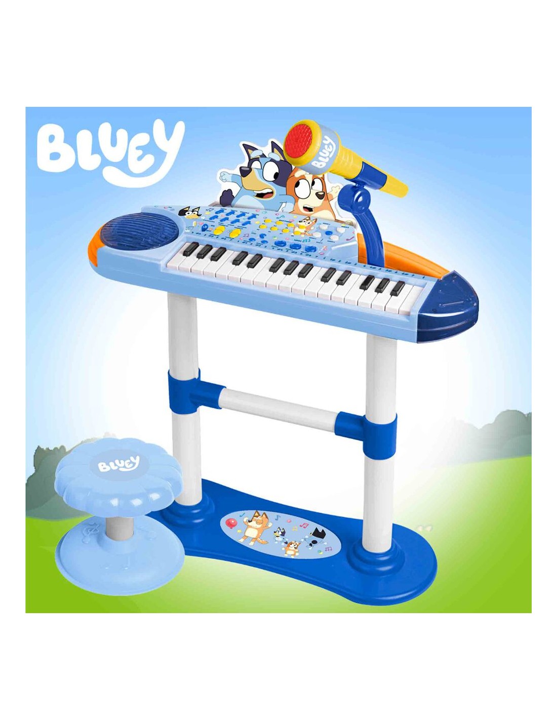 Teclado Electrónico con 32 teclas, micrófono, melodias de demostración, ritmos, instrumentos, controles de volumen y tempo, función de registro y efectos de sonido.