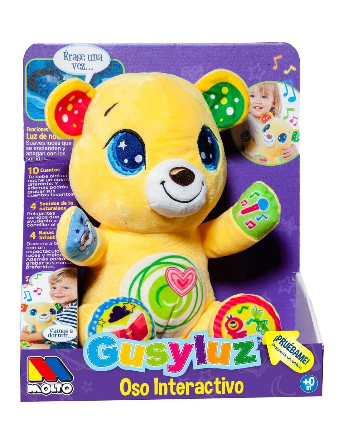 OSITO CUENTACUENTOS DE MOLTÓ. INCLUYE MUCHAS FUNCIONES. APRIETA SU MANO DERECHA PARA ESCUCHAR NANAS Y LA IZQUIERDA PARA GRABAR CUENTOS CON TU PROPIA VOZ. APRETANDO SU PIE DERECHO PODRÁS ESCUCHAS SONIDOS DE LA NATURALEZA Y APRETANDO LA IZQUIERDA TE CONTARÁ UN SINFÍN DE CUENTOS. ADEMÁS, APRETANDO SU BARRIGUITA EMITIRÁ LUZ PARA QUE NO PASEN MIEDO POR LAS NOCHES.