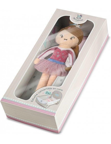 La muñeca mide aproximadamente 36 cm de alto, 15 cm de ancho y 6 cm de fondo.