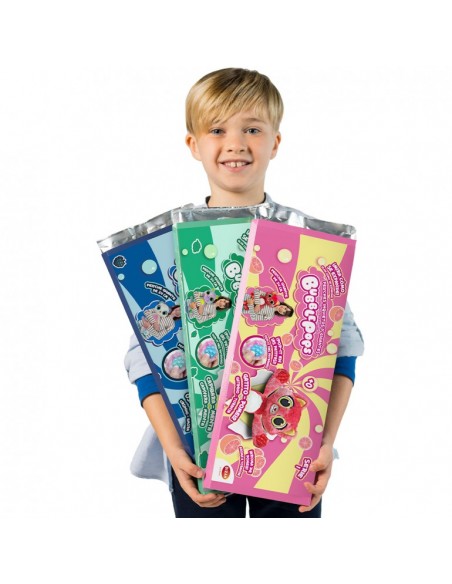 ¡Aterriza la revolución de los peluches! La apariencia es de un chicle gigante pero, cuando lo abres, el papel de aluminio multiplicará por CINCO su tamaño, convirtiéndose en un animal de peluche GIGANTE. Con un olor mágico, Bubble Pops es el peluche más top. ¡Disfruta su apasionante proceso de unboxing y alucina con cómo crece! Hay 12 animales y olores diferentes.