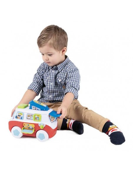 Una VAN interactiva bilingüe con ruedas libres para jugar y escuchar muchos contenidos sobre animales, deportes, viajes y mucho más.
