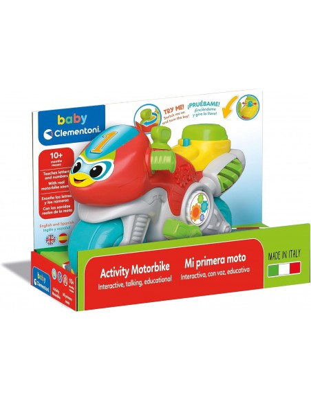 Ayuda al niño a aprender las letras y los números gracias a los botones interactivos en la zona del baúl de la moto; además de tener una llave que se puede girar y accionar