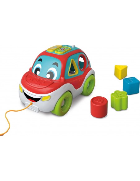 La actividad de introducción de formas permite al niño practicar habilidades manuales gracias a las respuestas sonoras; una vez terminada la actividad, el maletero se abre para recuperar las formas