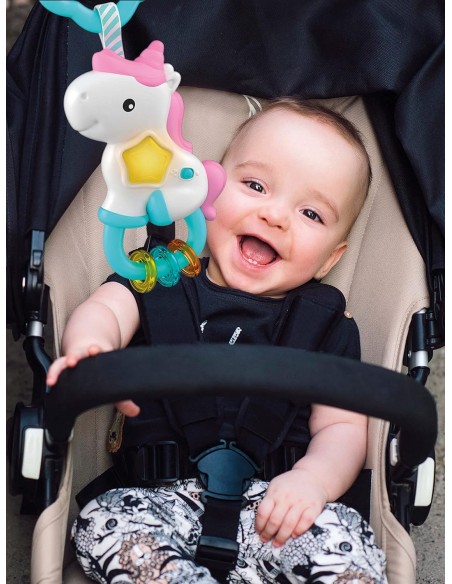 Su práctica anilla está diseñada para colgar el sonajero a la cuna o al cochecito y llevarlo a cualquier parte